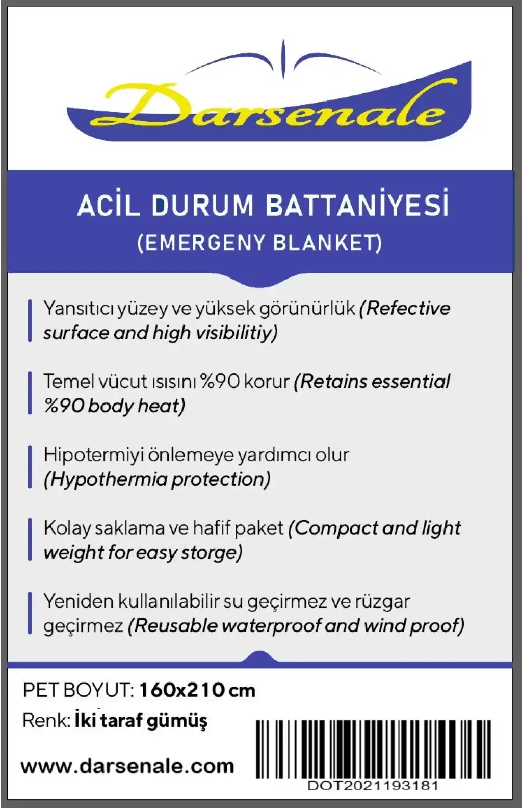 Darsenale (SOS Blanket) Acil Durum İçin Termal Battaniye Metalize Isı Yalıtımlı