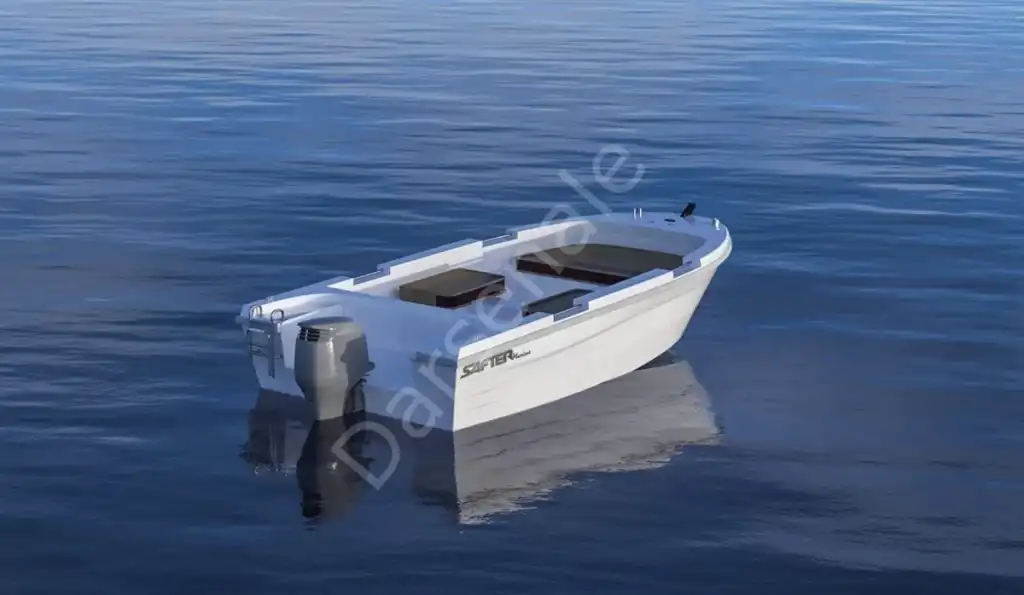 Safter 400 fiber balıkçı teknesi, adından da anlaşılacağı gibi, fiber gövde malzemesinden elle yatırma yöntemi ile üretilmiş bir balıkçı teknesidir. Safter 400 tekne modelimiz dıştan takmalı deniz motoru ve kürek ile rahatça kullanılabilmektedir. Dört (4) metre boya, 170 cm genişliğe, 210 kg boş ağırlığa ve 0.25 metre drafta mevcut olan Safter 400 polyester tekne hobi balıkçılığı için idealdir. C sertifikalı Safter fiber balıkçı teknesi, büyük bir güverteye ve derin v gövdesine sahip olup fırtınalı dalgalarda rahatlıkla yol alabilir. İsteğinize göre vinylex payandalı tente veya sunbrella tercihlerinizi kullanabileceğiniz Safter 400 fiber tekne modelimizde 2 adet livar ve kötü hava koşullarında kişisel eşyalarınızı güvenle saklayabileceğiniz kilitli ve kapaklı saklama alanları bulunmaktadır. Safter olarak 400 modelimizde doğamızı unutmadık ve çevre dostu elektrikli dıştan takma motor seçeneğini Safter 400’e ekledik.