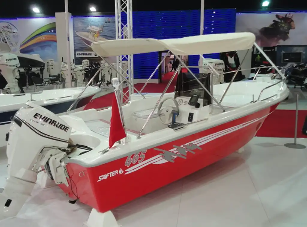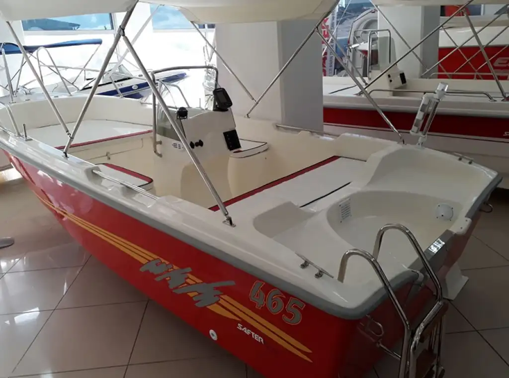Safter 465 polyester tekne modelimiz; 400 ailemizin ilgi çeken ve en çok tercih edilen modellerinden biridir. Sığ çekişi, çevik performansı ve fiber ile güçlendirilmiş sağlam karinasıyla güvenle yeni koyları keşfedebilirsiniz. 465 cm uzunluğunda, 170 cm genişliğinde, 30 cm drafta sahip olan ve boş ağırlığının 250 kg olduğu 465 modelimiz ile denizde keyifle vakit geçirebilirsiniz. Safter 465 fiber tekne modelimizin heyecan verici yeni özellikleri arasında; kilitlenebilir saklama alanı, isteğe bağlı kürek seçeneği, Vinylex Payandalı Tente, Vardavela, krom tutamaklar ve motor bağlama aynası, iki (2) adet livar ve çeşitli gövde renkleri yer alıyor. Balık tutma, su sporları, deniz gezintisi, güneşlenme gibi tüm favori etkinliklerinize en uygun oturma düzeni ve opsiyonel seçenekleri arasından size en uygun olanı seçerek teknenizi istediğiniz gibi tasarlayabilirsiniz. Kürek, motor ve elektrikli çevreci deniz motorlarıyla kullanıma uygun olan Safter 465 tekne ile deniz seyrinin keyfini çıkarın. Balıkçılığı bir hobi veya meslek olarak yapanların en çok tercih ettiği Safter 465 ile denizdeki rakiplerinizin bir adım önüne geçin.