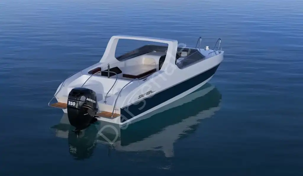 Safter 750 Eagle, kalitesinden ödün vermeden yüksek performans ve geniş baş altı kamarası ile sizlere lüks sunuyor. Yat konforunda sürat teknesi deneyimini yaşamak için 750 Eagle tam size göre! Safter Eagle polyester tekne, keskin stiliyle ve Safter garantili fiber yapısıyla güçlendirilmiş Hard top’ı veya isteğinize bağlı olarak eklenebilecek Krom Rollbar ile sizlere eşsiz bir tasarım sunar. En son teknolojilerle donatılmış Safter 750 Eagle, keskin v karinasıyla hız tutkunları için heyecan verici!