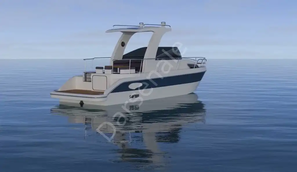 Şık, yayvan V karinası, geniş iç mekanı ve çözüm ortaklığı yaptığımız deniz motoru markalarının son teknoloji güçleri ile ünlü: Safter 850 Martı. Olağanüstü itiş gücü, yakıt verimliliği, dıştan takmalı ve içten takmalı motor modeli seçenekleriyle 850 Martı fiber tekne modelimiz sizleri bekliyor. Komuta mahallindeki son teknoloji donanımlar, doğa karşınıza ne zorluk çıkarırsa çıkarsın, güvenli bir deniz gezintisini sizlere sunar. Birinci sınıf deri döşemeli ayarlanabilir koltuklar, güverteyi sizler için harika bir açık hava yemek alanına dönüştürür. Safter 850 polyester tekne; T-Top, mutfakçık, iyi donanımlı bir kabin ve konaklama alanlarıyla birlikte sizlere konforu sunar. Bunun yanında güneş enerjisi paneli seçeneği ile doğadan gelen enerjiyi kullanabilir, gönül rahatlığıyla tekne seyrinizin keyfini çıkarabilirsiniz. Son teknolojiyle donanmış komuta mahalli sizlere mutlak kontrol sağlar. T-top ve brandası 850 Martı’yı her türlü hava koşullarına karşı korumada en üst noktaya taşıyor. Özel tasarlanmış zarif ve geniş kamarası sizlere konforlu bir konaklama imkanı sağlar. Güvertedeki mutfakçığı sizlere zahmetsiz bir deneyim yaşatıyor.