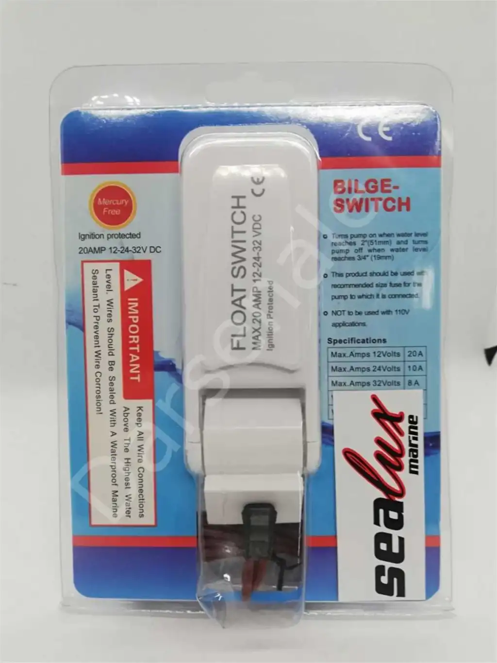 SEAFLO şamandıra şalterleri, sadece tatlı su ve tuzlu su ile kullanım için tasarlanmıştır.