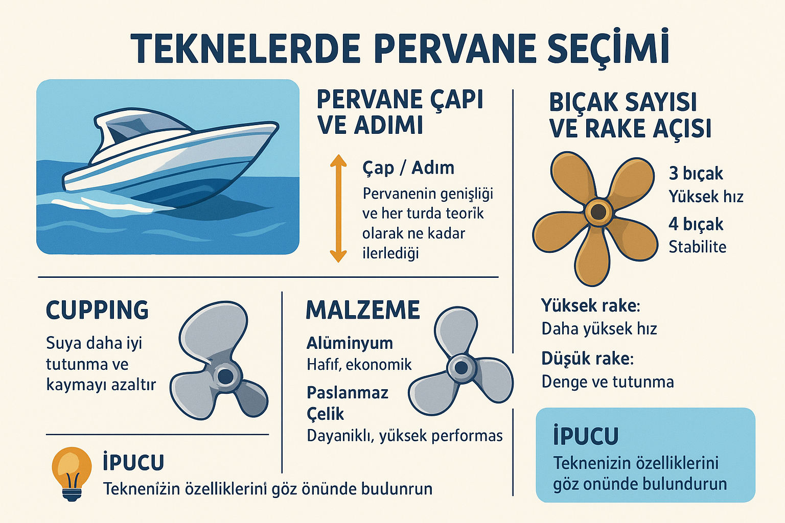Teknenizin su üzerindeki performansını belirleyen en kritik unsurlardan biri pervane seçimidir. Yanlış bir pervane; yüksek yakıt tüketimi, düşük hız, aşırı motor zorlanması ve titreşim gibi sorunlara neden olabilir.
